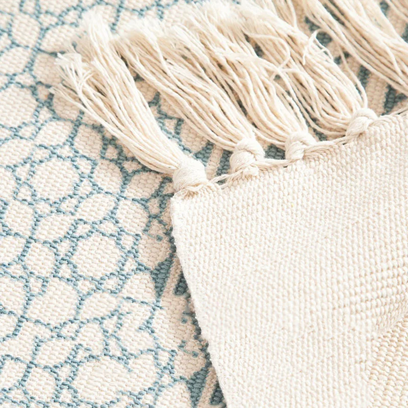 BEST QUALITY SKTEZO Cotton and Linen Woven Carpet Floor Mat Door Bedroom Tapestry Decorative Blanket Tea Table F