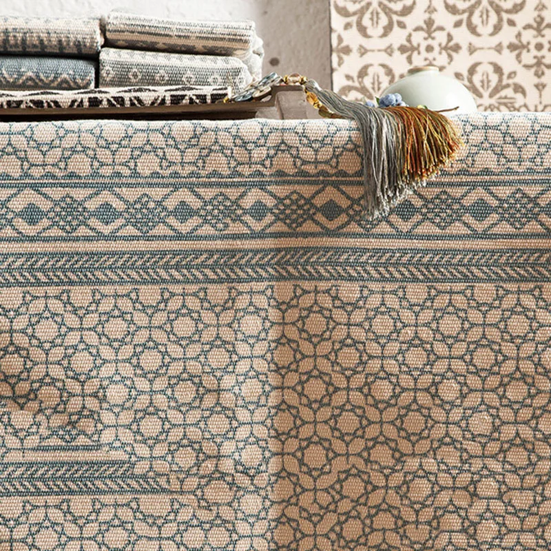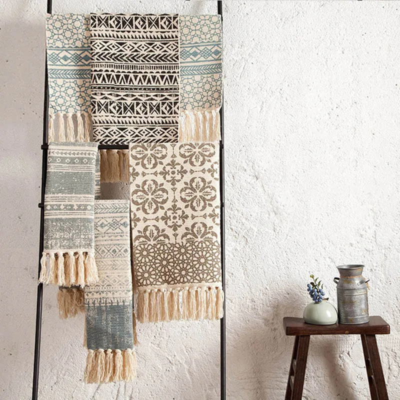 SKTEZO Cotton and Linen Woven Carpet Floor Mat Door Bedroom Tapestry Decorative Blanket Tea Table F