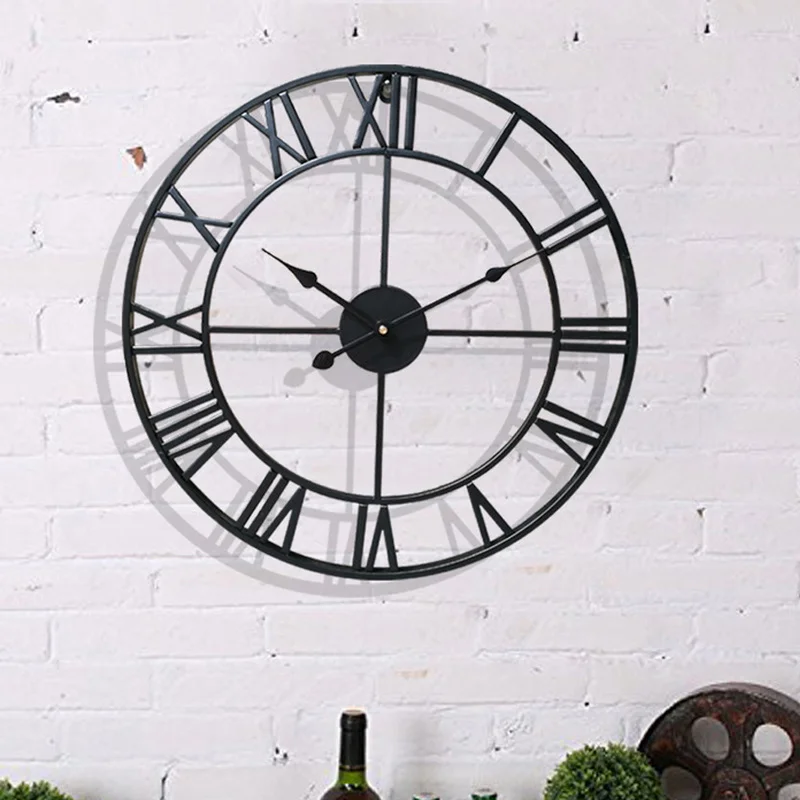 Nordic Roman Numeral Metal Wall Clocks Retro Hollow Iron Round Art Black Gold Large Outdoor Garden