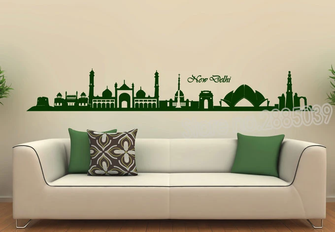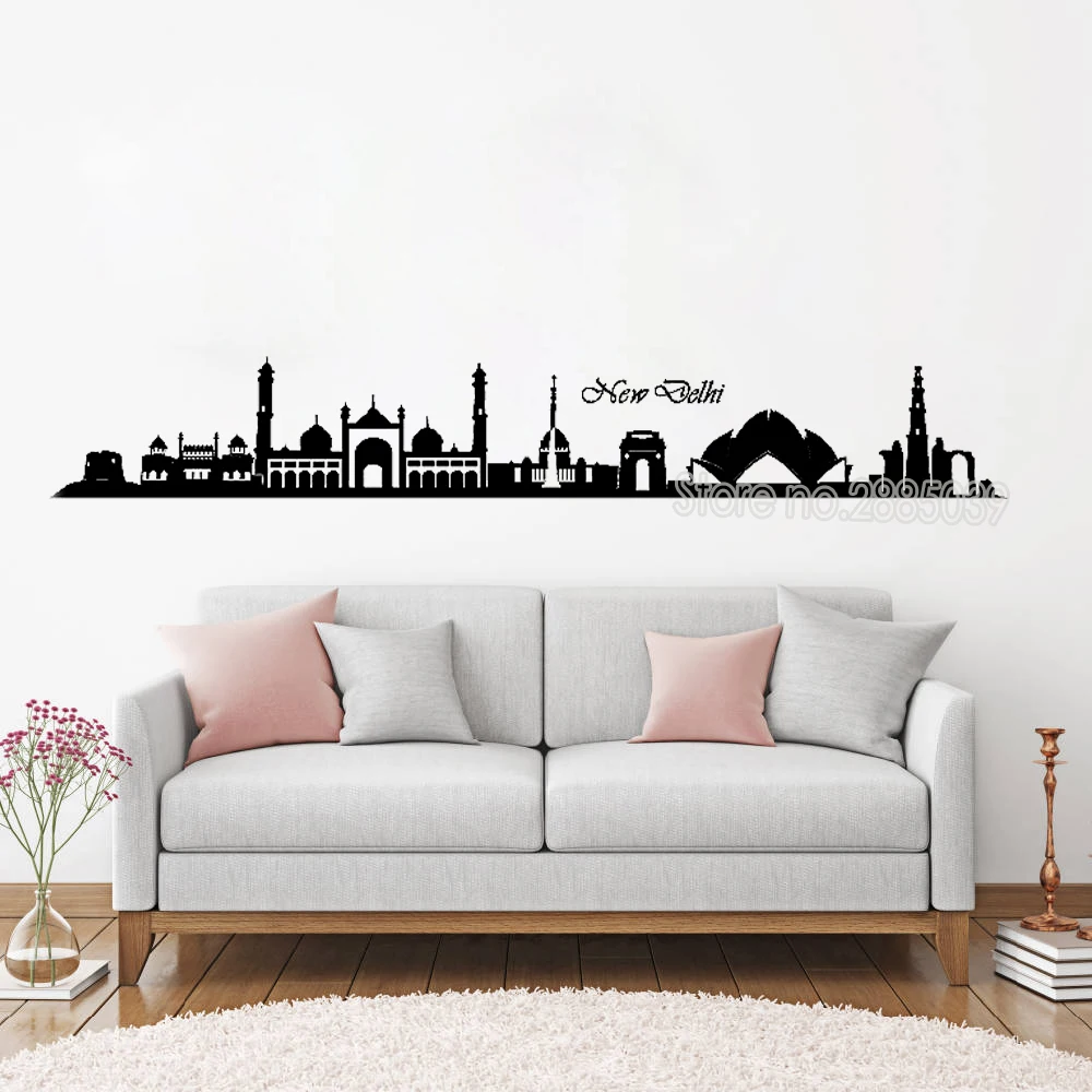 TOP Wonderful Skyline Of New Delhi Wall Sticker Newly Arrivals Vinyl Home Decor Art Mural Sofa Backgrou