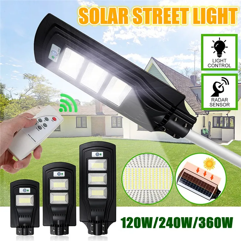 120W 240W 360W LED Outdoor Lighting Wall Lamp Solar Street Light Solar Powered Radar Motion Remote