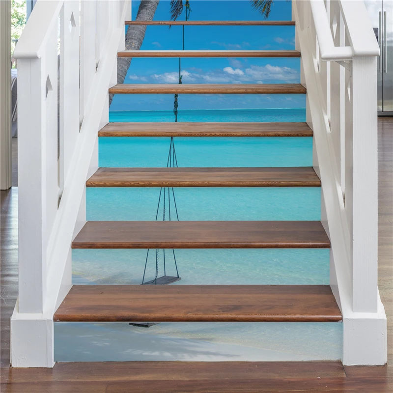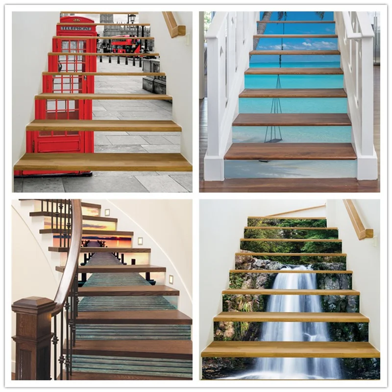 % 8 pcs/ set of natural scenery waterfall seaside stairs stickers home decoration stairs steps wall