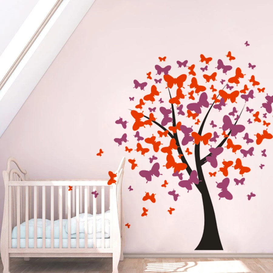 Hot Sale Butterfly Pattern Nursery Tree Wall Sticker Kids Room Decor Butterflies Blossom Vinyl Wall Decals G