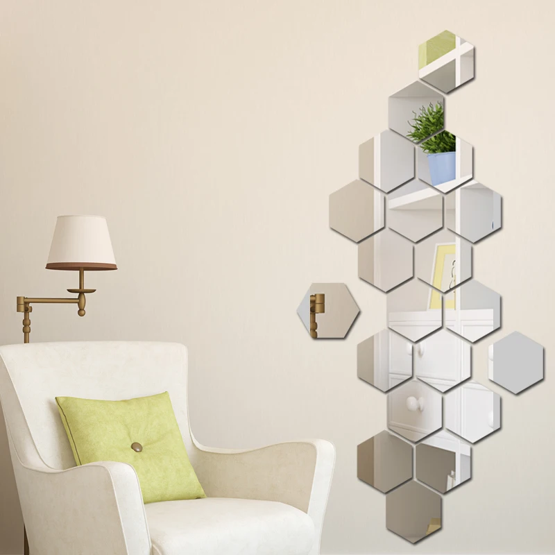 Geometric hexagonal mirror acrylic fitting mirror 3D wall sticker Living room porch DIY gold decora