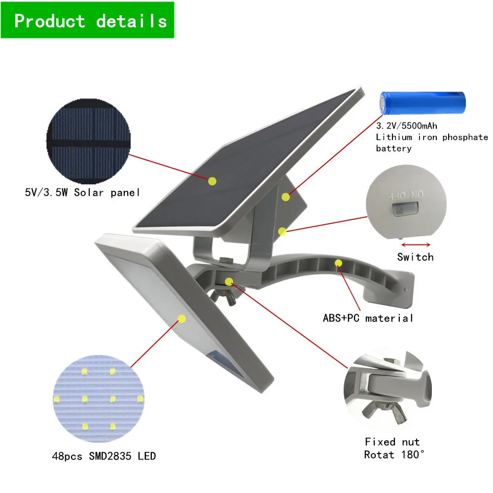 New Arrival 48LEDs Solar Lamp Wall Street outdoor lighting Dusk to Dawn Super Bright Waterproof Sec