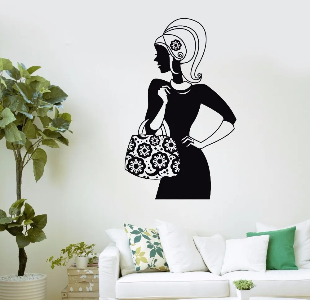 Bag Store Vinyl Wall Decal Shopping Girl Fashion Women Beauty Salon Wall Sticker Clothing Store Win