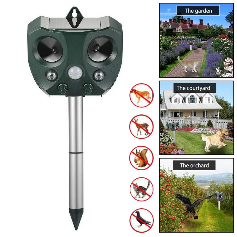 HIGH QUALITY Fox Cat Repellent Solar Power Ultrasonic Waterproof Animal Repeller Scarer for Garden Yard Farm TN8