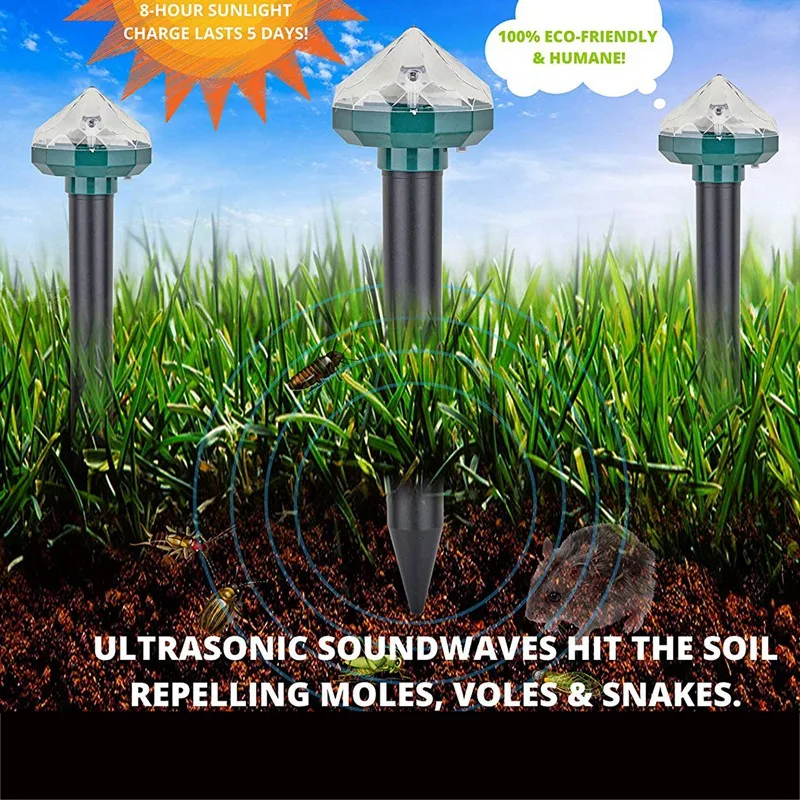 TOP Solar Powered Ultrasonic Mole Pest Repeller Outdoor Waterproof Garden Repellent Spikes with Multi-C