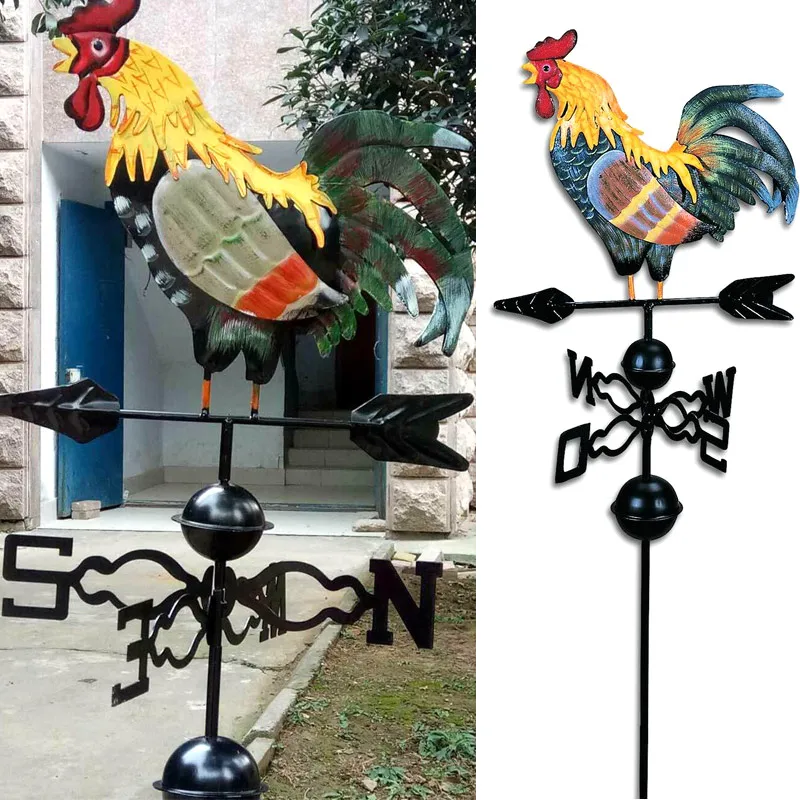 Newly 120CM Height Metal Weather Vane with Rooster Ornament Rooster Weathervanes Garden Patio Decor